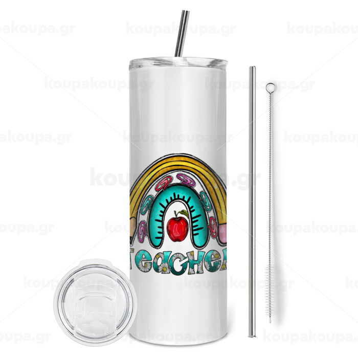 Teacher, Tumbler stainless steel 600ml, with metal straw & cleaning brush