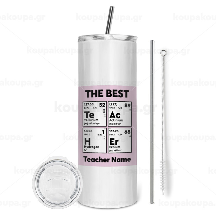 THE BEST Teacher chemical symbols, Tumbler stainless steel 600ml, with metal straw & cleaning brush