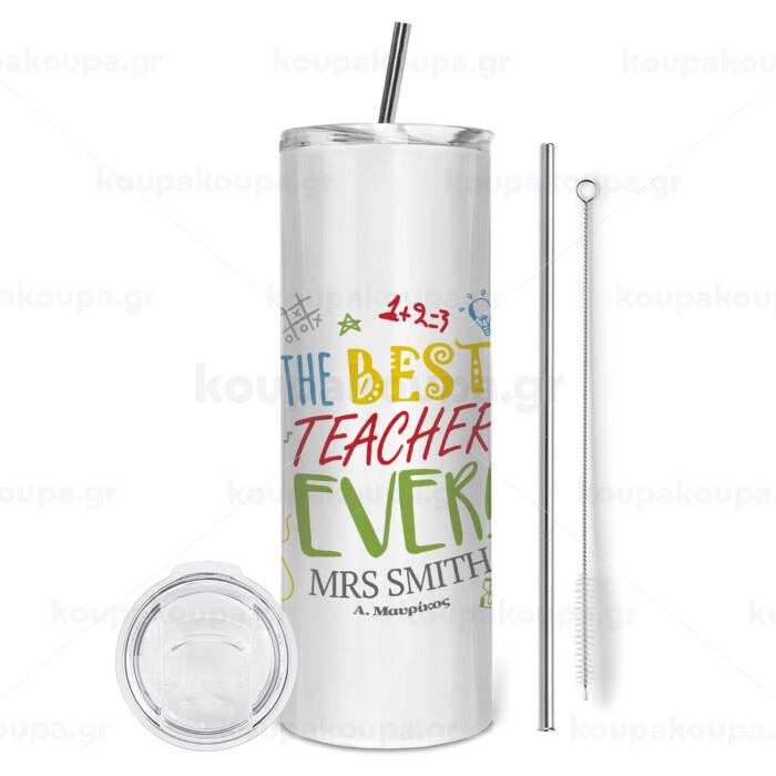 The best teacher ever!, Tumbler stainless steel 600ml, with metal straw & cleaning brush