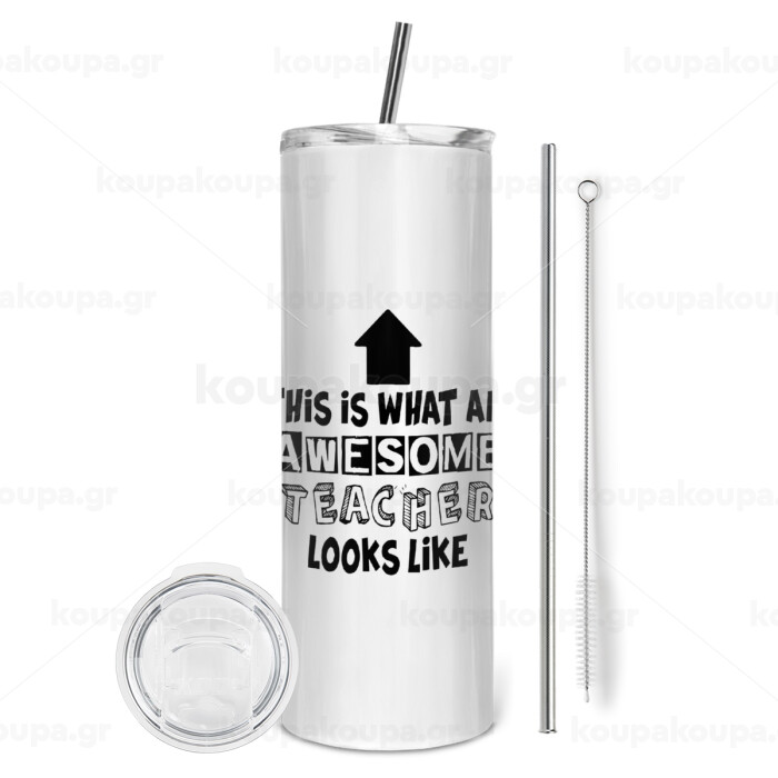 This is what an awesome teacher looks like!!! , Tumbler stainless steel 600ml, with metal straw & cleaning brush