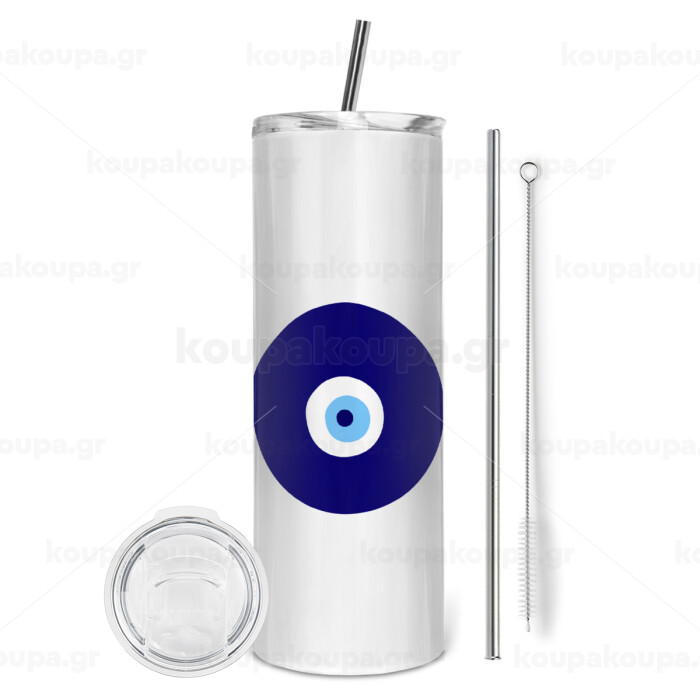 Χάντρα γαλαζιά, Tumbler stainless steel 600ml, with metal straw & cleaning brush