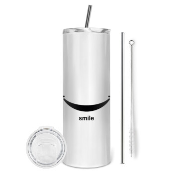 Smile!!!, Tumbler stainless steel 600ml, with metal straw & cleaning brush