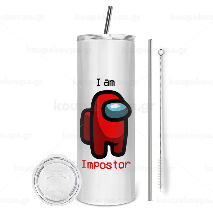 Among US i am impostor, Tumbler stainless steel 600ml, with metal straw & cleaning brush
