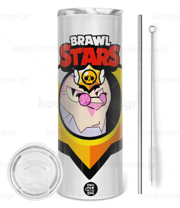 Brawl Stars Byron, Tumbler stainless steel 600ml, with metal straw & cleaning brush