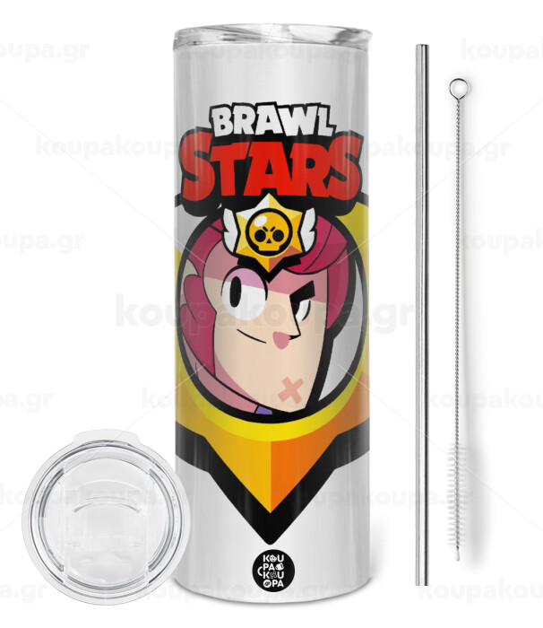 Brawl Stars Colt, Tumbler stainless steel 600ml, with metal straw & cleaning brush