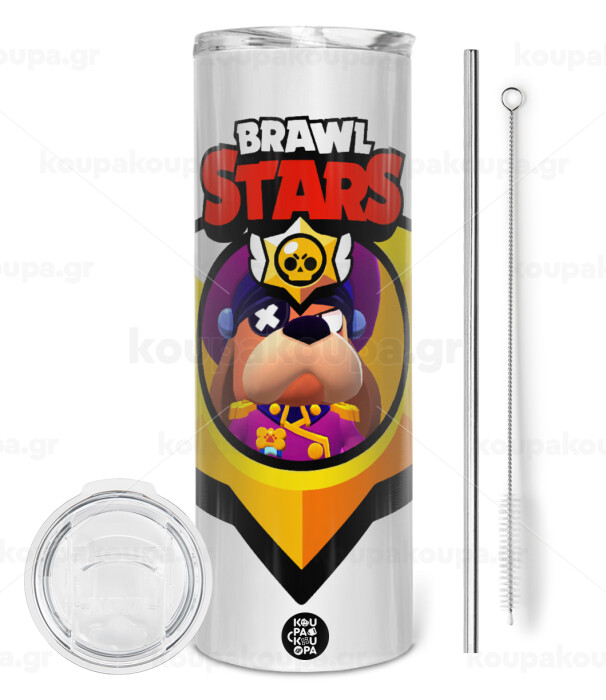 Brawl Stars Ruffs, Tumbler stainless steel 600ml, with metal straw & cleaning brush