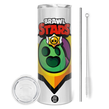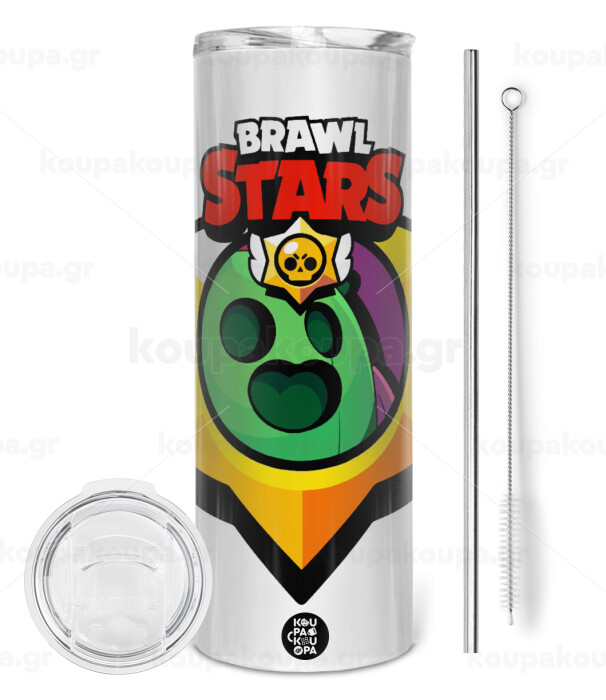 Brawl Stars Spike, Tumbler stainless steel 600ml, with metal straw & cleaning brush