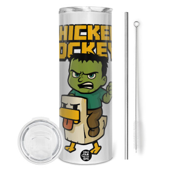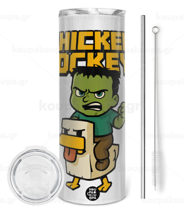 Chicken Jockey, Tumbler stainless steel 600ml, with metal straw & cleaning brush