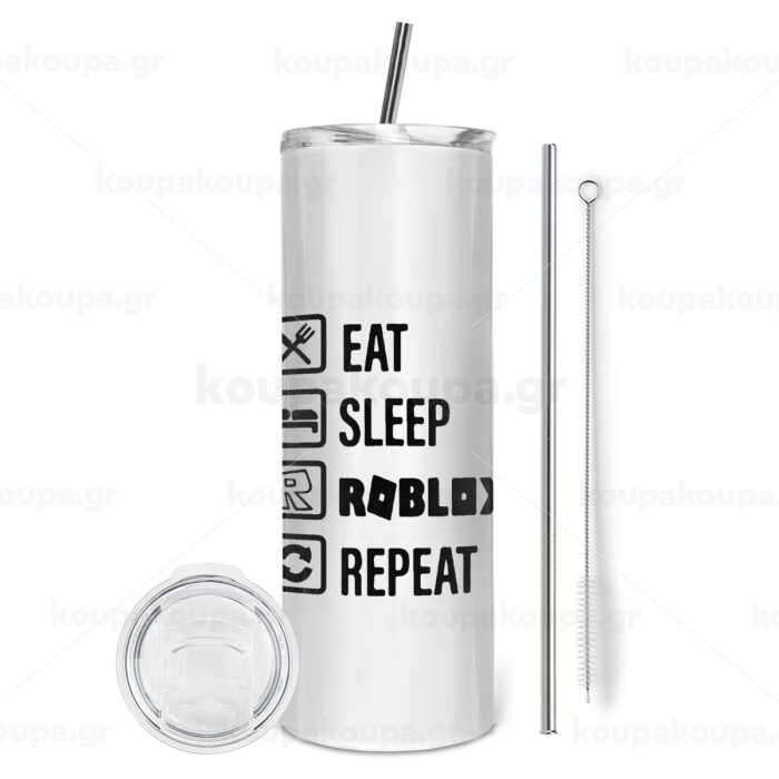 Eat, Sleep, Roblox, Repeat, Tumbler stainless steel 600ml, with metal straw & cleaning brush