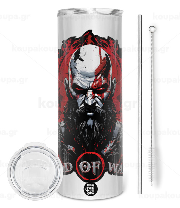 God of war, Tumbler stainless steel 600ml, with metal straw & cleaning brush