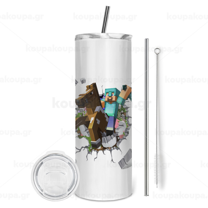 Minecraft brick, Tumbler stainless steel 600ml, with metal straw & cleaning brush