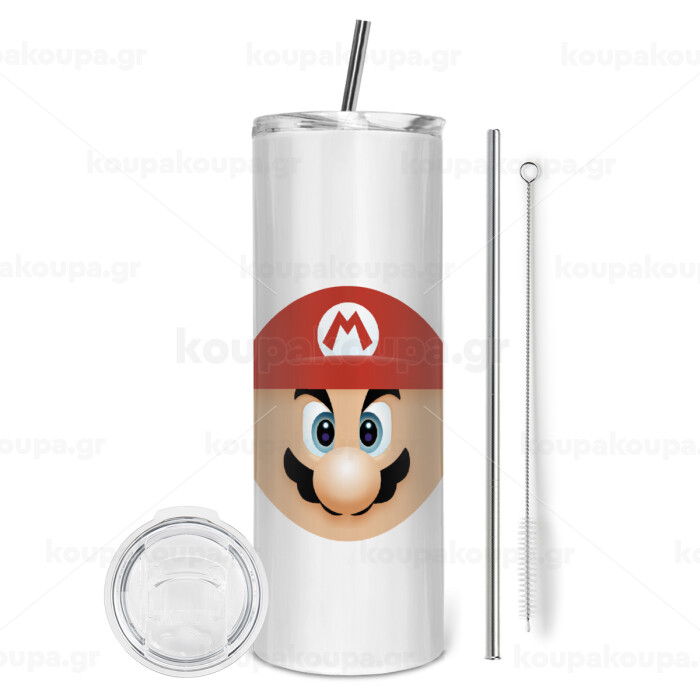 Super mario flat, Tumbler stainless steel 600ml, with metal straw & cleaning brush