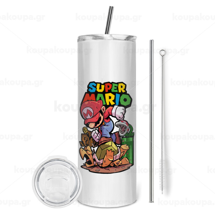 Super mario Jump, Tumbler stainless steel 600ml, with metal straw & cleaning brush