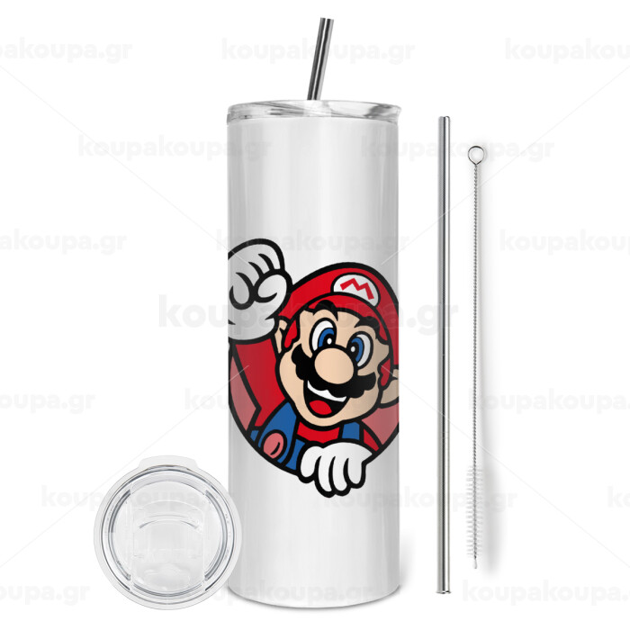 Super mario win, Tumbler stainless steel 600ml, with metal straw & cleaning brush