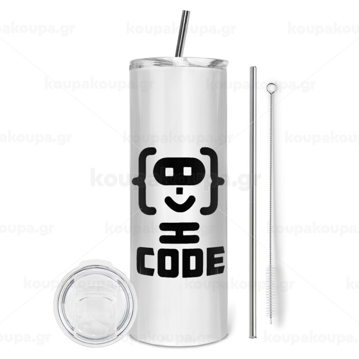 Code Heroes symbol, Tumbler stainless steel 600ml, with metal straw & cleaning brush