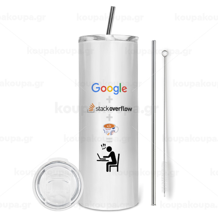 Google + Stack overflow + Coffee, Tumbler stainless steel 600ml, with metal straw & cleaning brush