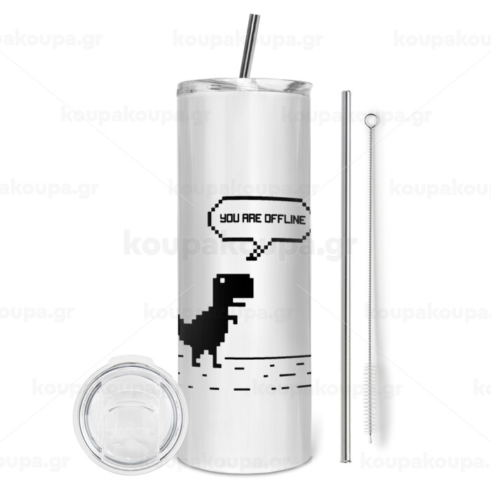 You are offline dinosaur, Tumbler stainless steel 600ml, with metal straw & cleaning brush