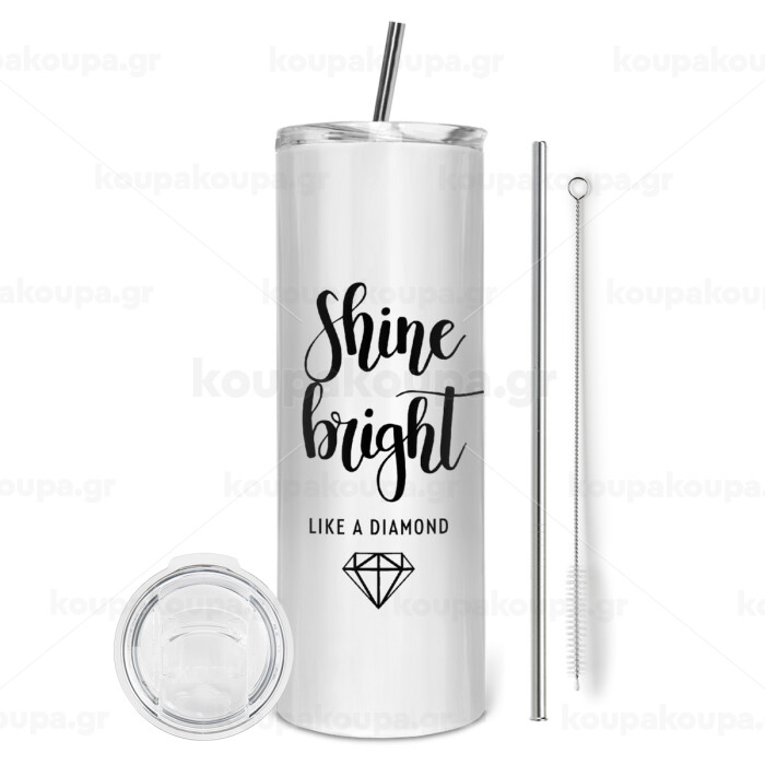 Bright, Shine like a Diamond, Tumbler stainless steel 600ml, with metal straw & cleaning brush
