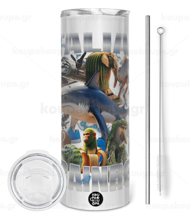 Italian Brainrot, Tumbler stainless steel 600ml, with metal straw & cleaning brush