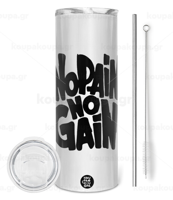 No pain no gain, Tumbler stainless steel 600ml, with metal straw & cleaning brush