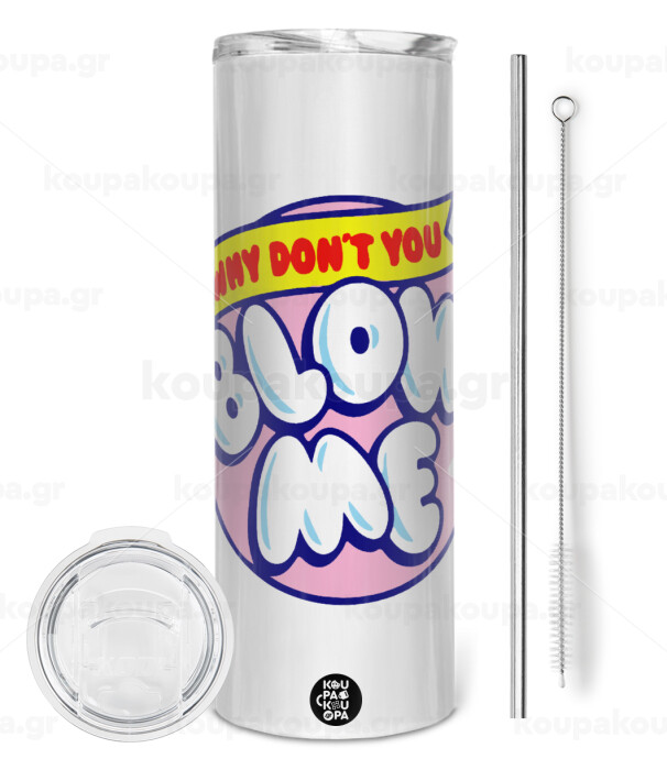 Why Don't You Blow Me Funny, Tumbler stainless steel 600ml, with metal straw & cleaning brush