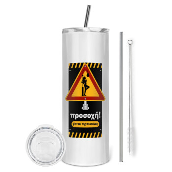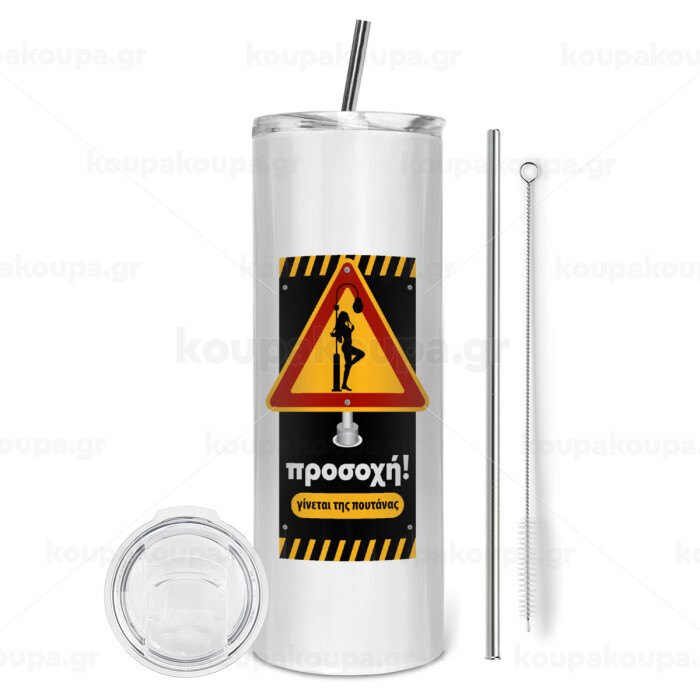 Προσοχή Γίνεται της πουτ.νας, Tumbler stainless steel 600ml, with metal straw & cleaning brush