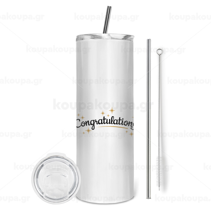 Congratulations, Tumbler stainless steel 600ml, with metal straw & cleaning brush