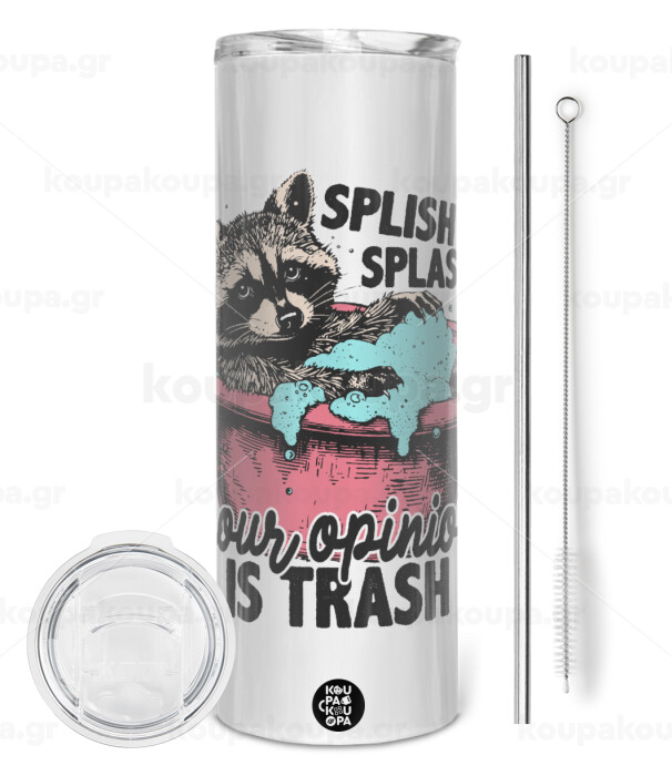 Splish splash your opinion is trash, Tumbler stainless steel 600ml, with metal straw & cleaning brush