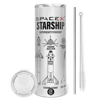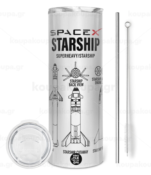 Space X, Tumbler stainless steel 600ml, with metal straw & cleaning brush