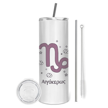 Ζώδια Αιγόκερως, Tumbler stainless steel 600ml, with metal straw & cleaning brush