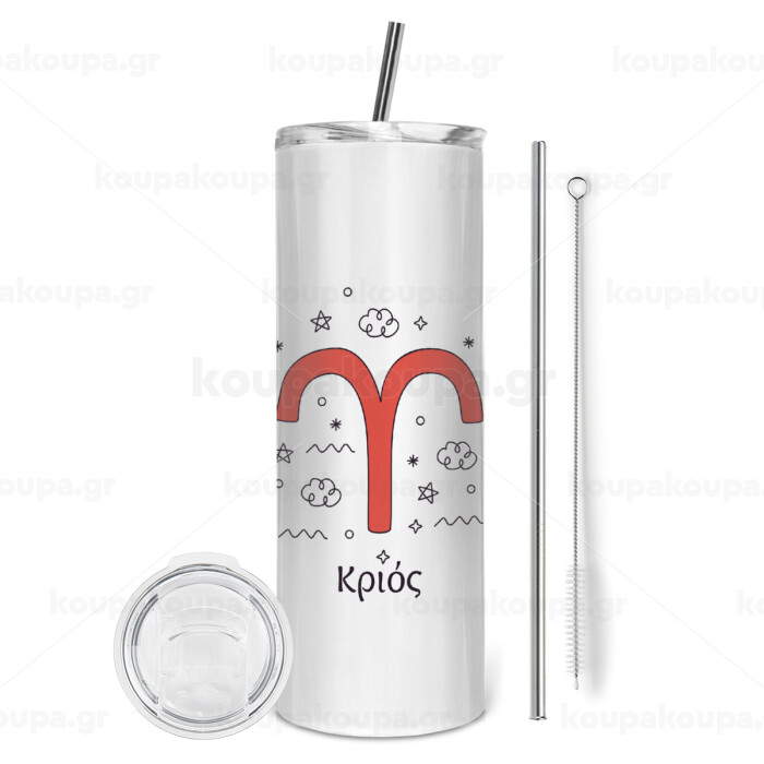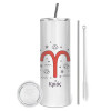 Ζώδια Κριός, Tumbler stainless steel 600ml, with metal straw & cleaning brush