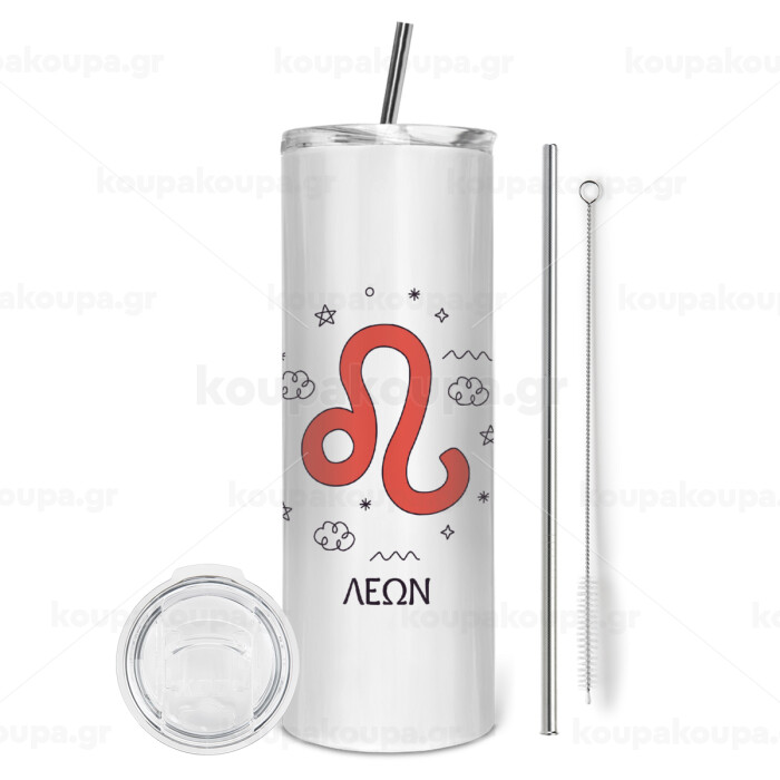 Ζώδια Λέων, Tumbler stainless steel 600ml, with metal straw & cleaning brush
