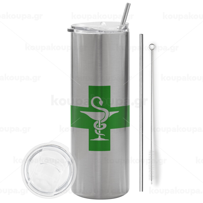 Φαρμακείο, Tumbler stainless steel Silver 600ml, with metal straw & cleaning brush