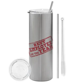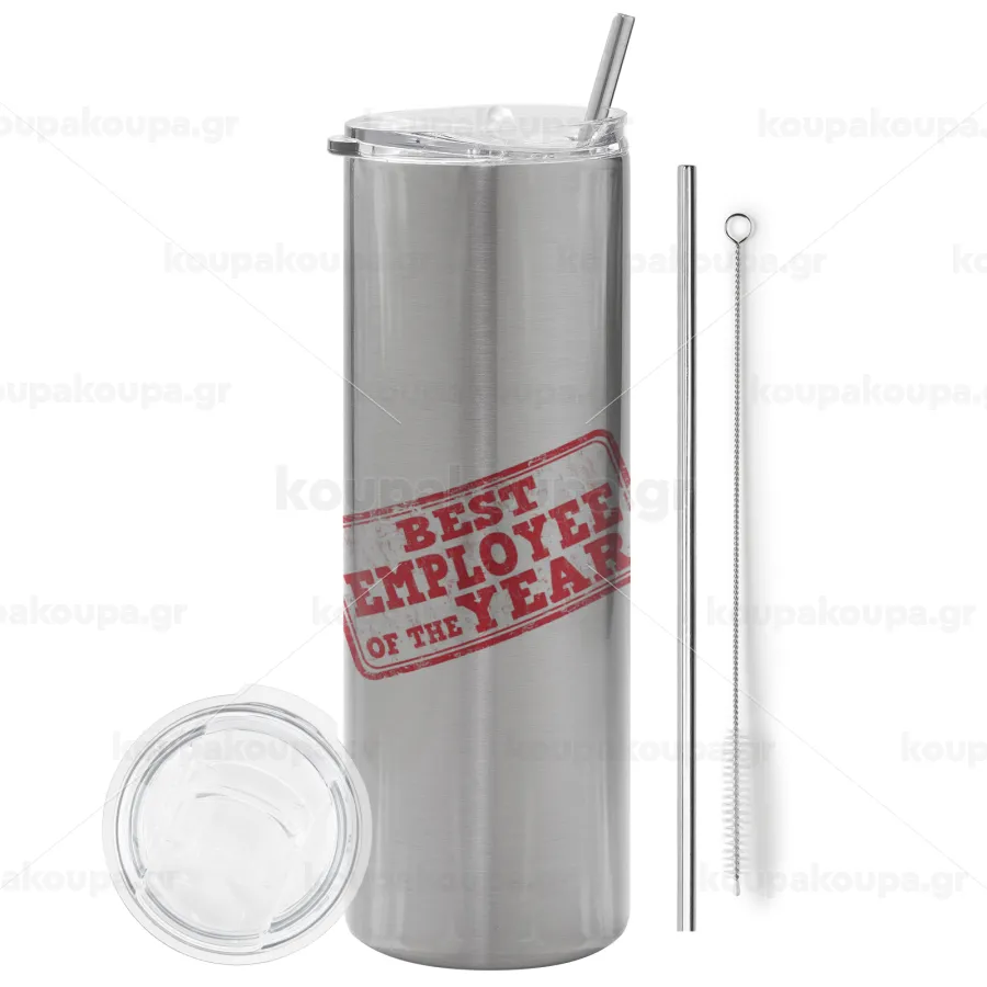 Best employee of the year, Tumbler stainless steel Silver 600ml, with metal straw & cleaning brush