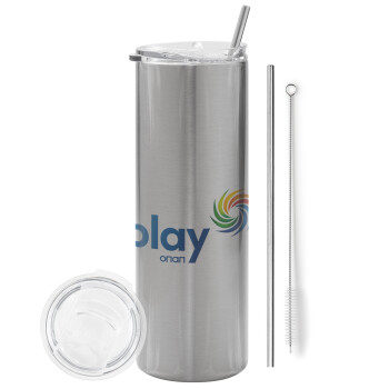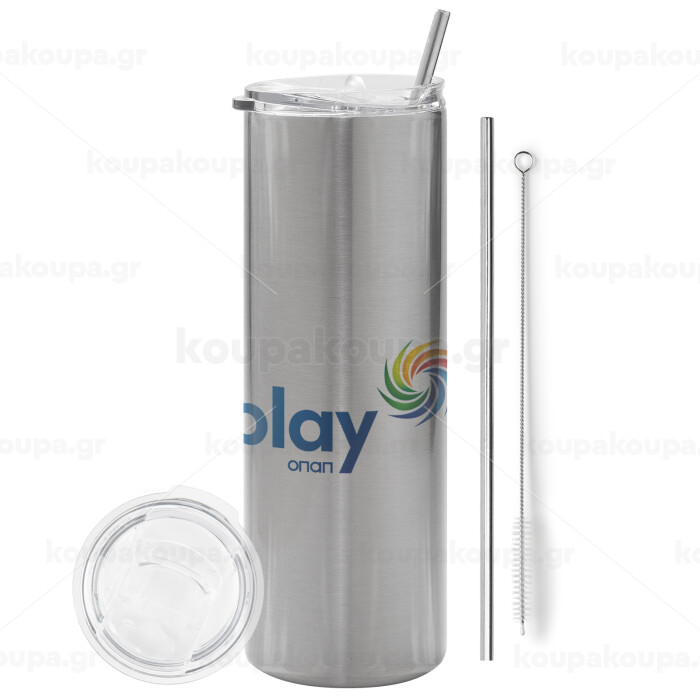 Play by ΟΠΑΠ, Tumbler stainless steel Silver 600ml, with metal straw & cleaning brush