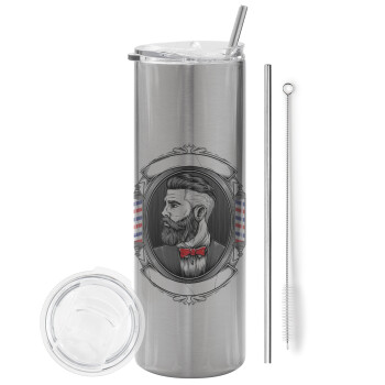 Barber shop, Tumbler stainless steel Silver 600ml, with metal straw & cleaning brush