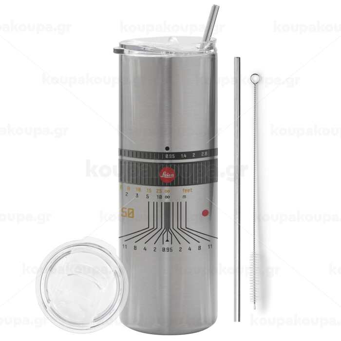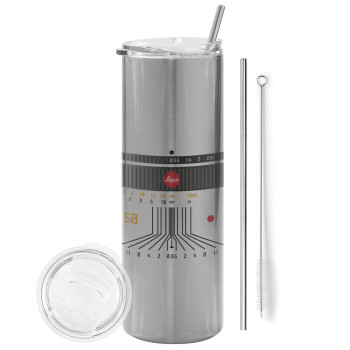 Leica Lens, Tumbler stainless steel Silver 600ml, with metal straw & cleaning brush