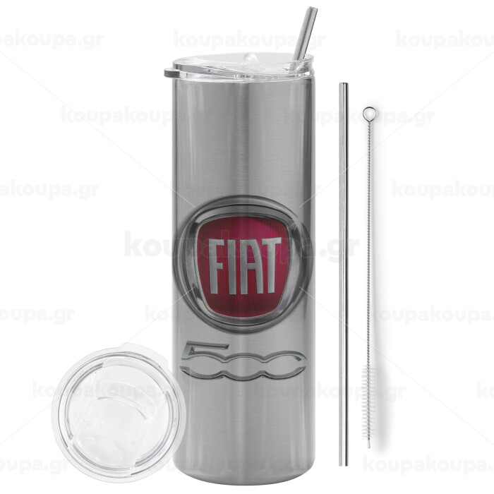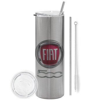 FIAT 500, Tumbler stainless steel Silver 600ml, with metal straw & cleaning brush