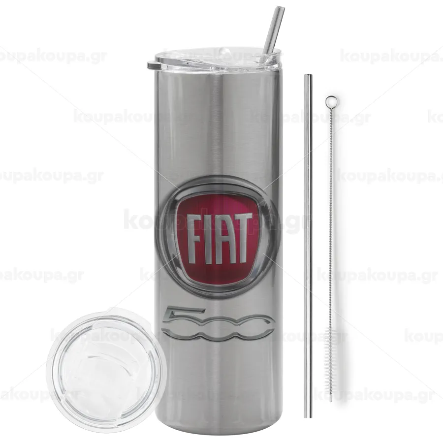 FIAT 500, Tumbler stainless steel Silver 600ml, with metal straw & cleaning brush