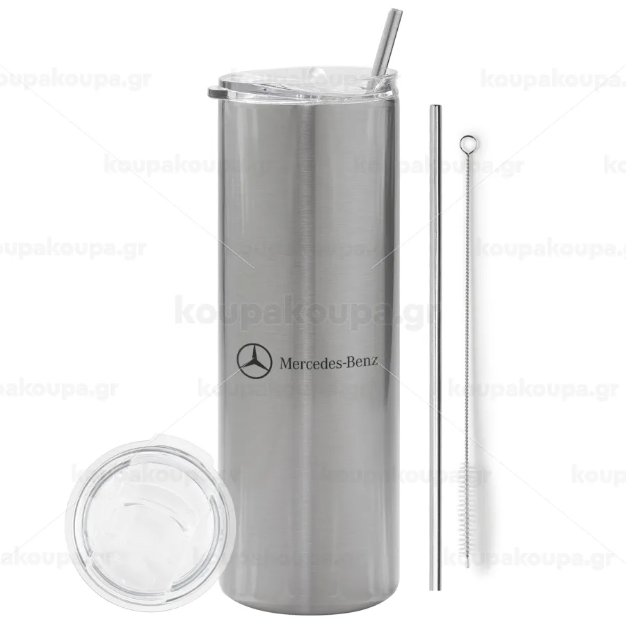 Mercedes small logo, Tumbler stainless steel Silver 600ml, with metal straw & cleaning brush