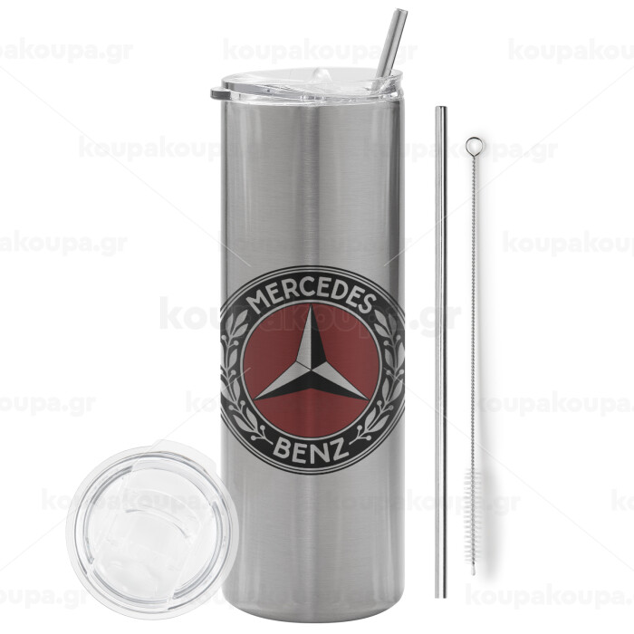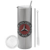 Mercedes vintage, Tumbler stainless steel Silver 600ml, with metal straw & cleaning brush