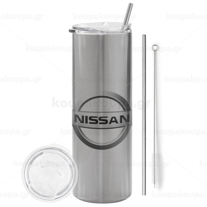 nissan, Tumbler stainless steel Silver 600ml, with metal straw & cleaning brush
