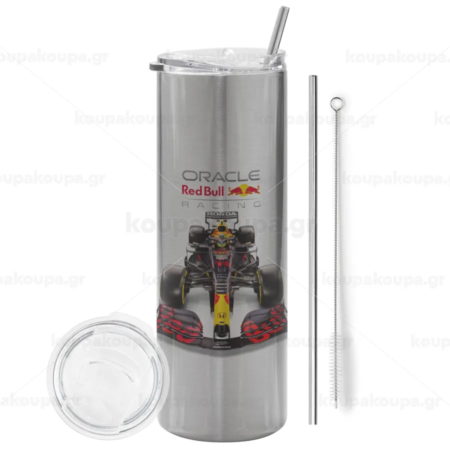 Redbull Racing Team F1, Tumbler stainless steel Silver 600ml, with metal straw & cleaning brush