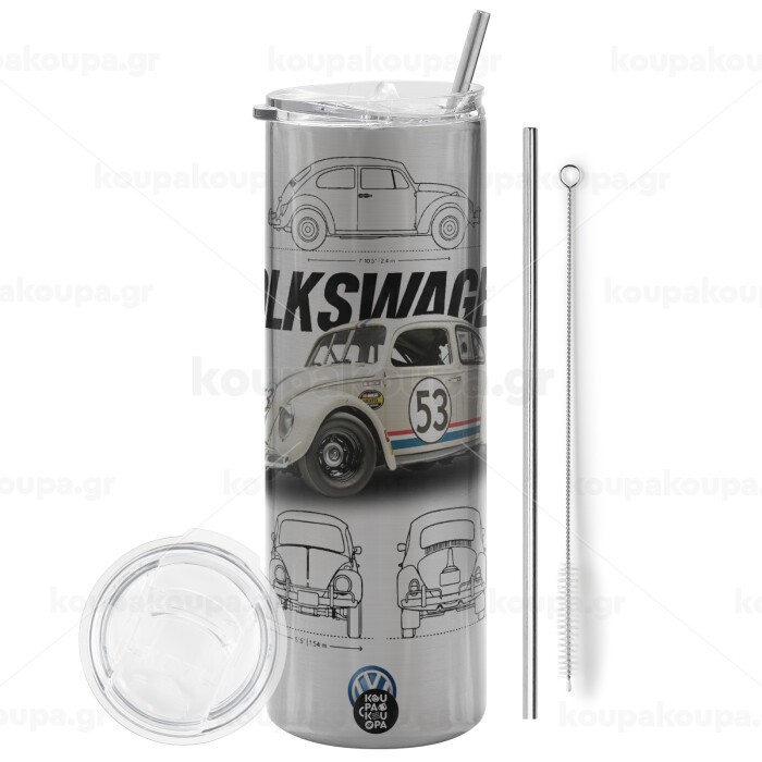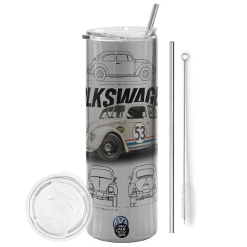 Volkswagen Beetle, Tumbler stainless steel Silver 600ml, with metal straw & cleaning brush