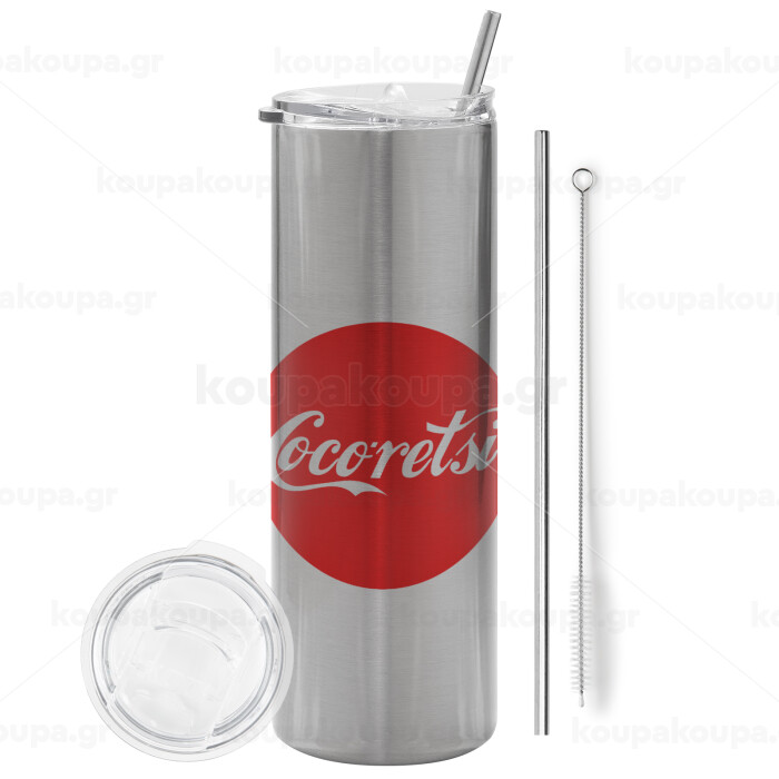 Cocoretsi, Tumbler stainless steel Silver 600ml, with metal straw & cleaning brush