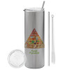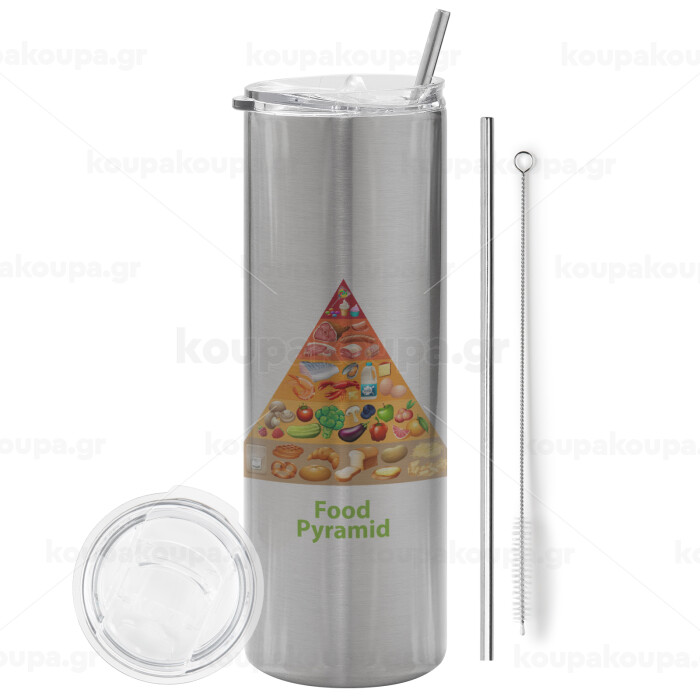 Food pyramid chart, Tumbler stainless steel Silver 600ml, with metal straw & cleaning brush