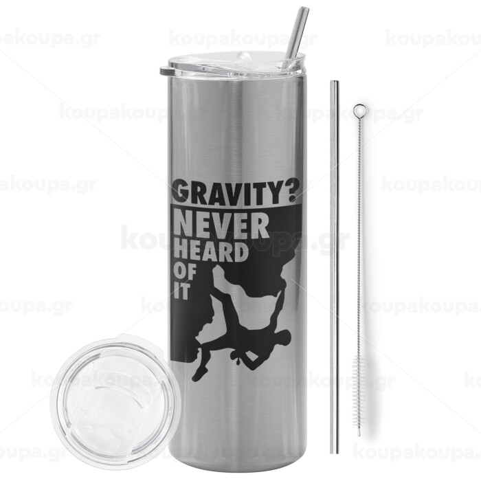 Gravity? Never heard of that!, Tumbler stainless steel Silver 600ml, with metal straw & cleaning brush