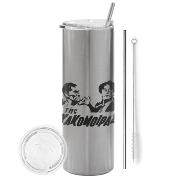 Tis kakomoiras, Tumbler stainless steel Silver 600ml, with metal straw & cleaning brush
