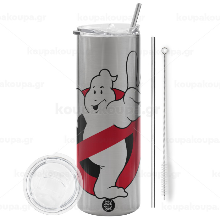 Ghostbusters, Tumbler stainless steel Silver 600ml, with metal straw & cleaning brush