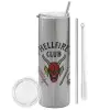Hellfire CLub, Stranger Things, Tumbler stainless steel Silver 600ml, with metal straw & cleaning brush